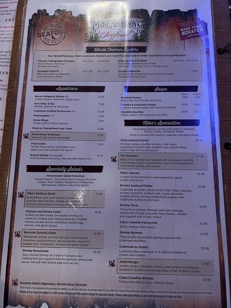Welcome to Mike Anderson's Seafood Restaurant & Oyster Bar, a treasured gem in Baton Rouge known for its vibrant Cajun and Creole seafood offerings. The menu is a delightful journey through the ocean, featuring succulent dishes like the famed shrimp sampler and fresh, plump oysters that have received rave reviews from patrons. Diners can savor a range of options from perfectly grilled tuna steak to the mouthwatering surf and turf that star under the kitchen's skilled touch.
